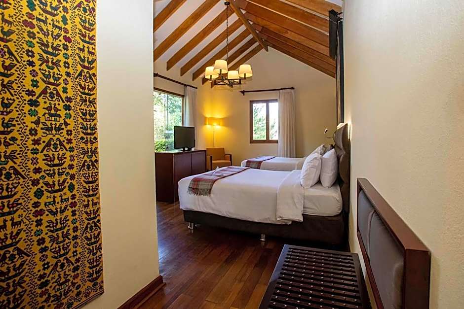 Twin Villa is 366 square feet and includes 2 double beds 131-150 width plus desk, cable tv, hairdryer, and safe.